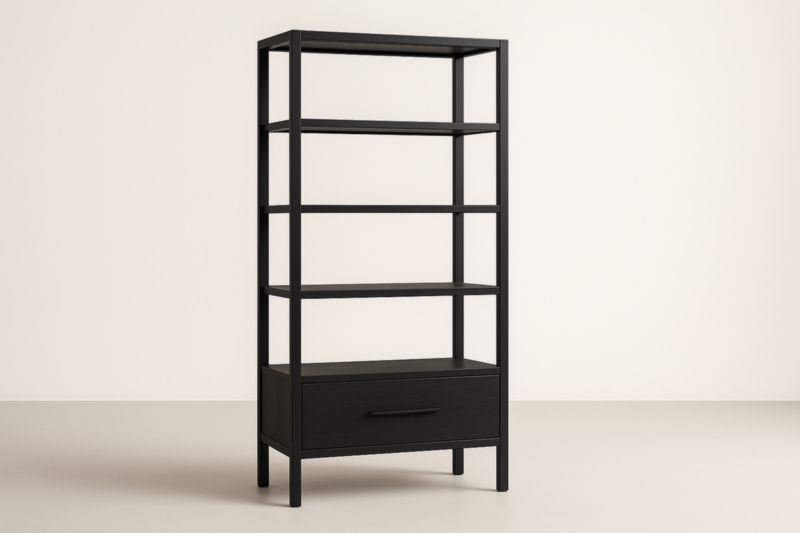 Étagère en acier et bois MDF avec tiroir Noir 80x40x170 cm
